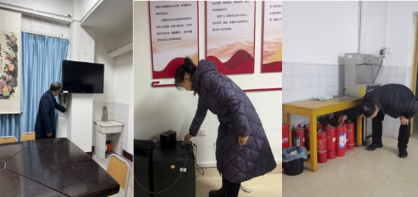 在检查过程中,着重对各类消防设施设备进行了仔细查验,包括灭火器有效期及压力状态、消防栓组件完整性、应急照明灯与疏散指示标志有效性等。同时,针对冬季用电特点,对活动场所内电器设备及线路安全展开重点摸排,查看是否存在私拉乱接电线、违规使用大功率取暖设备、电器老化等隐患,对发现问题详细记录并现场明确整改责任。检查期间还与在场老同志亲切交流,结合冬季实际开展安全宣传,重点提醒注意用电安全,如人走断电、避免超负荷用电、正确使用合格电器产品等,并温馨叮嘱在使用电暖器、空调等供暖设备时,务必保持安全距离、避免长时间持续运行、远离易燃物品,确保取暖安全。